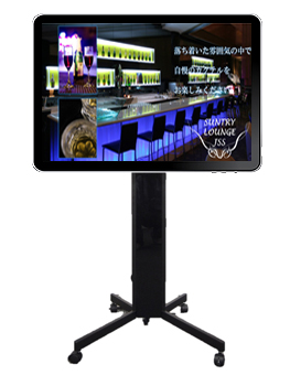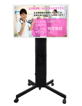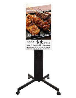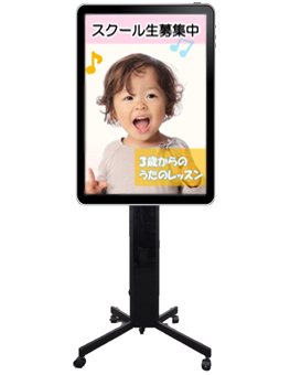 - 施設や店舗入り口など、人が通過していく場所でのアピールに適した縦型デジタルサイネージ。42型大型モニターにより、離れた場所からの視認性にも優れ、あらゆる人の目線の高さで動画アピールし、人目を集めます。