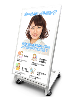 32型大型モニターで、フルHDサイズの鮮明な動画CMを流し、視聴者の興味をひきます。