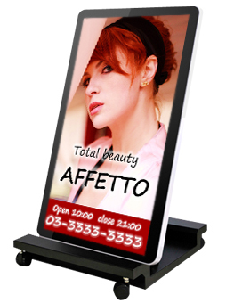- 待合室など、人がとどまる場所でのアピールに適した横型デジタルサイネージ。