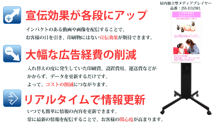 ジャパンサイネージシステムは印刷物に代わるデジタルの広告媒体、デジタルサイネージを提供します。
